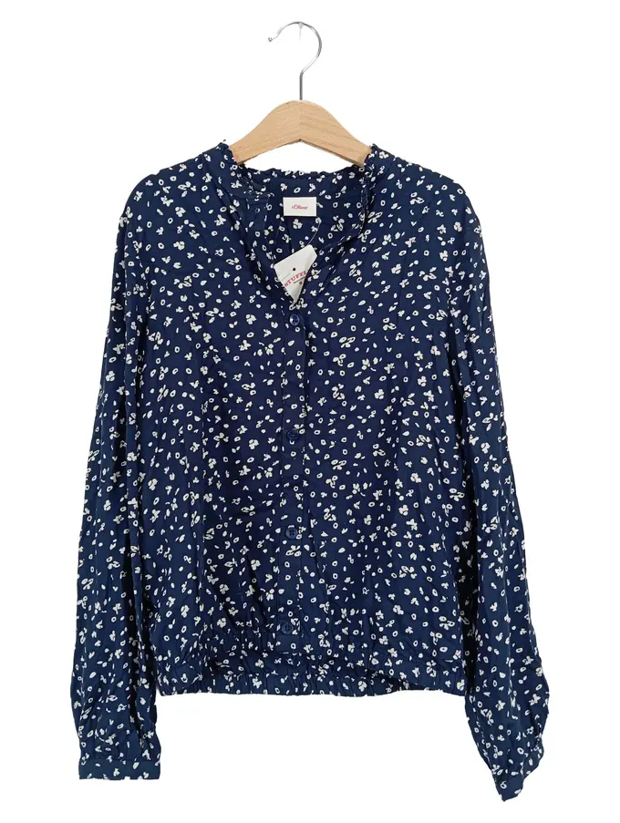 Mädchen Bluse Gr. 140 Blau Blumenmuster Viskose Langarm