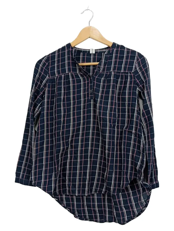 Mädchen Bluse Kariert Langarm Blau Gr. 146/152 Baumwolle