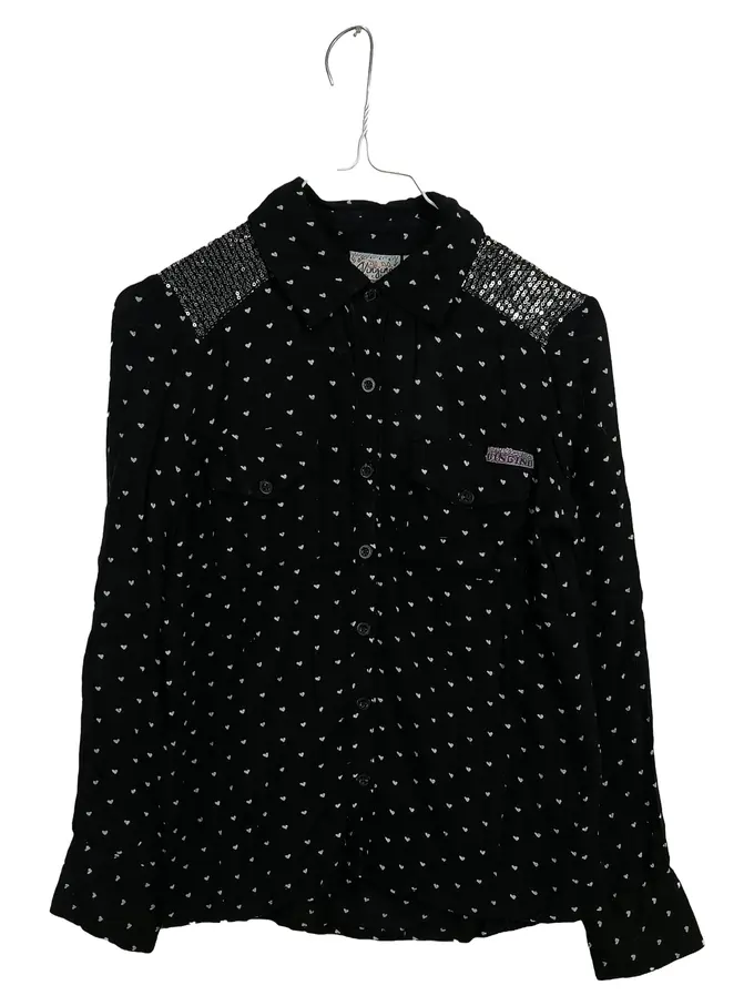 Mädchen Hemdbluse Schwarz Herzen Pailletten Gr. 152 / 12 Jahre