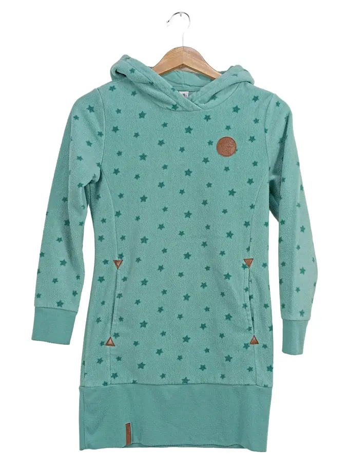 Mädchen Hoodie Kleid Gr. 146/152 Türkis Sterne Fleece