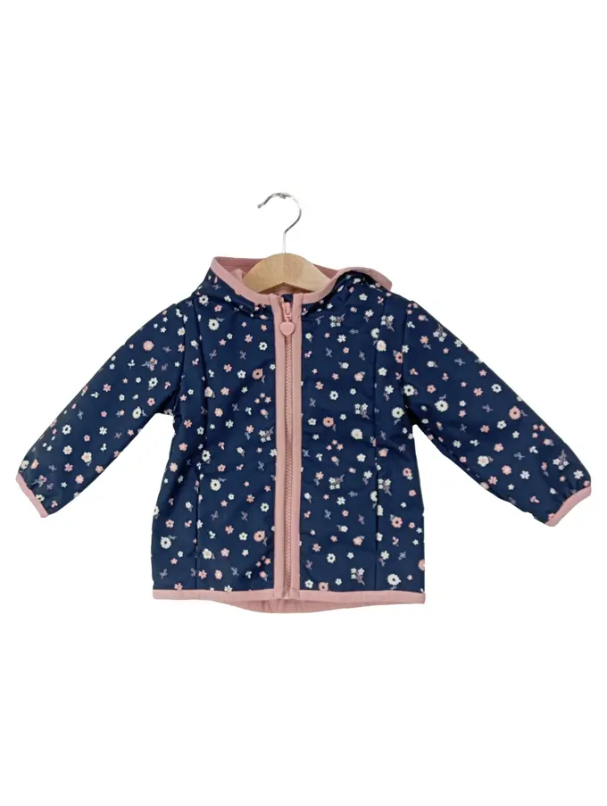 Mädchen Jacke Gr. 74 Blumenmuster Kapuze Blau Rosa