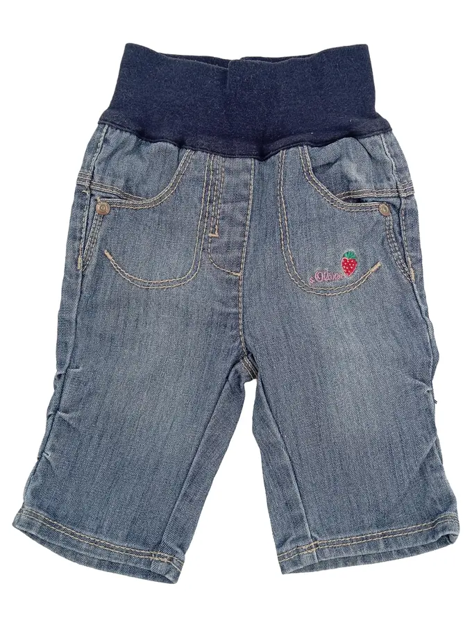 Mädchen Jeans Shorts Erdbeer-Applikation Gr. 50-53 Blau Casual