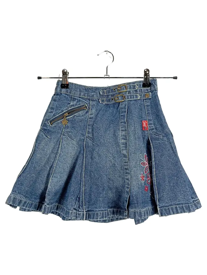 Mädchen Jeansrock Gr. 140 Blumen Stickerei Blau Denim