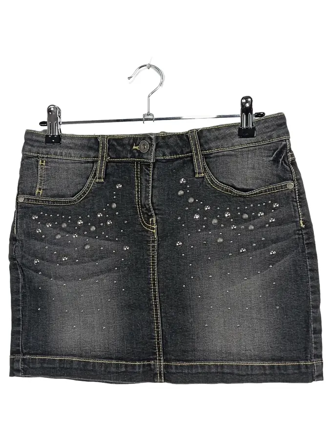 Mädchen Jeansrock Gr. 158 Grau mit Herz-Applikationen Strass
