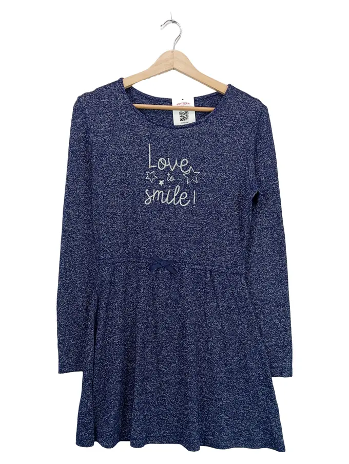 Mädchen Jerseykleid blau meliert Gr. 158/164 Langarm