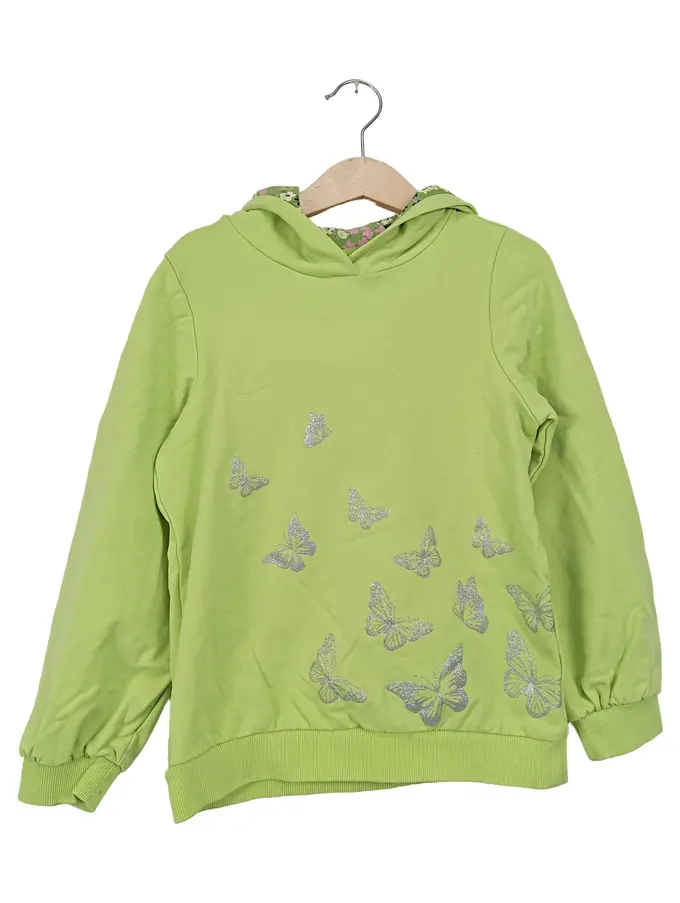 Mädchen Kapuzenpullover Gr. 128/134 Grün Schmetterlinge Casual