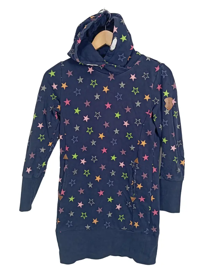 Mädchen Kapuzenpullover Kleid Sterne Blau Gr. 146/152 Baumwolle
