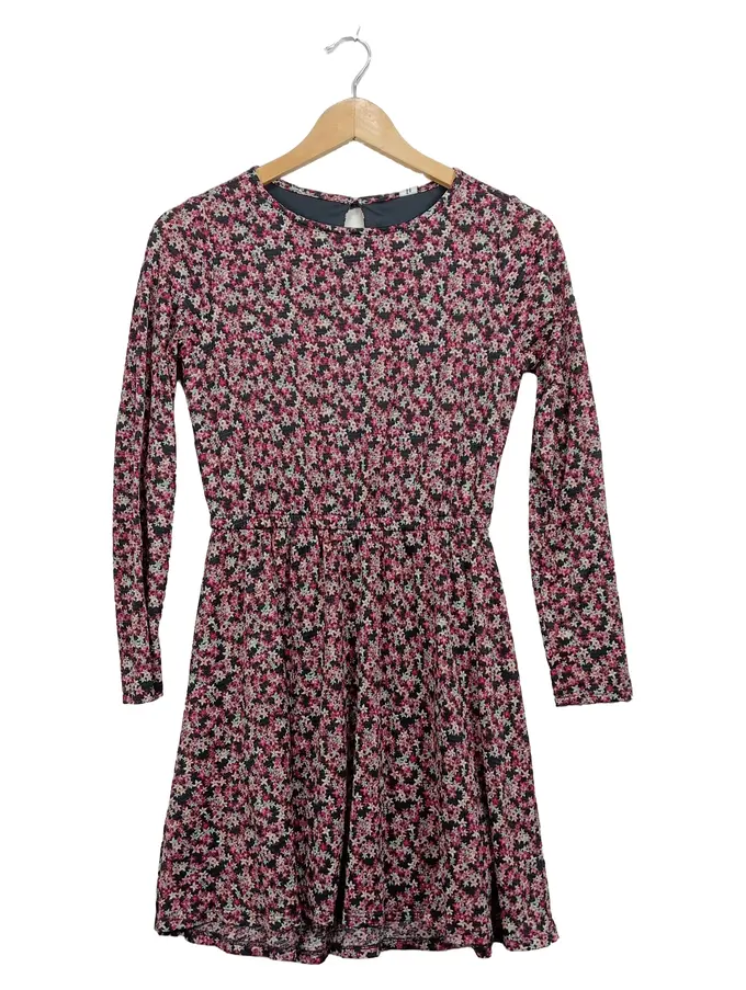 Mädchen Kleid Blumenmuster Langarm Gr. 146/152 Rosa Freizeitkleid