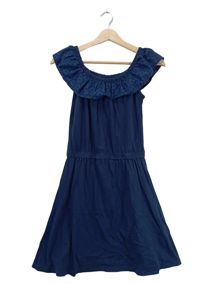 Mädchen Kleid Gr. 158/164 Navy Blau Rüschen Sommer Freizeitkleid