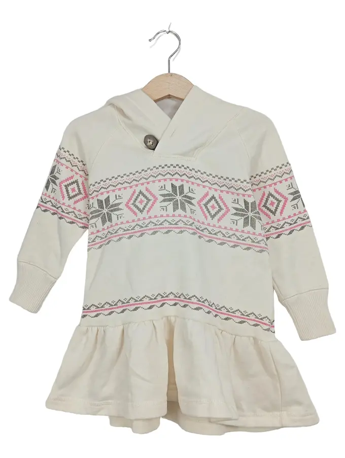 Mädchen Kleid Kapuze Norwegermuster Gr. 92 Beige