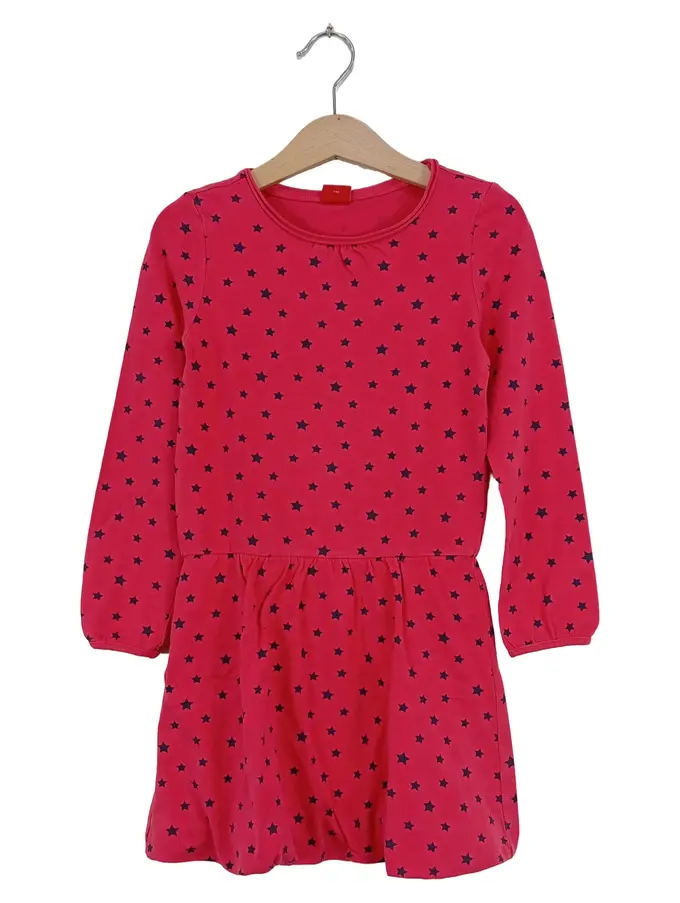 Mädchen Kleid Sternenmuster Pink Gr. 110 Langarm Baumwolle