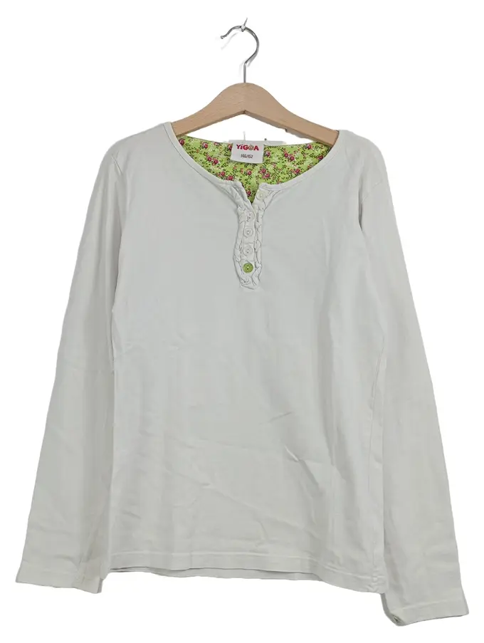 Mädchen Langarmshirt Gr. 146/152 Weiß Casual Knopfleiste