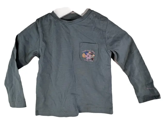 Mädchen Langarmshirt Gr. 74 Petrol Blumen Glitzer Baumwolle