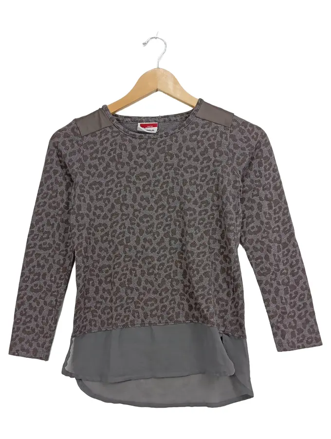 Mädchen Langarmshirt Leopardenmuster Gr. 146/152 Grau Chiffon