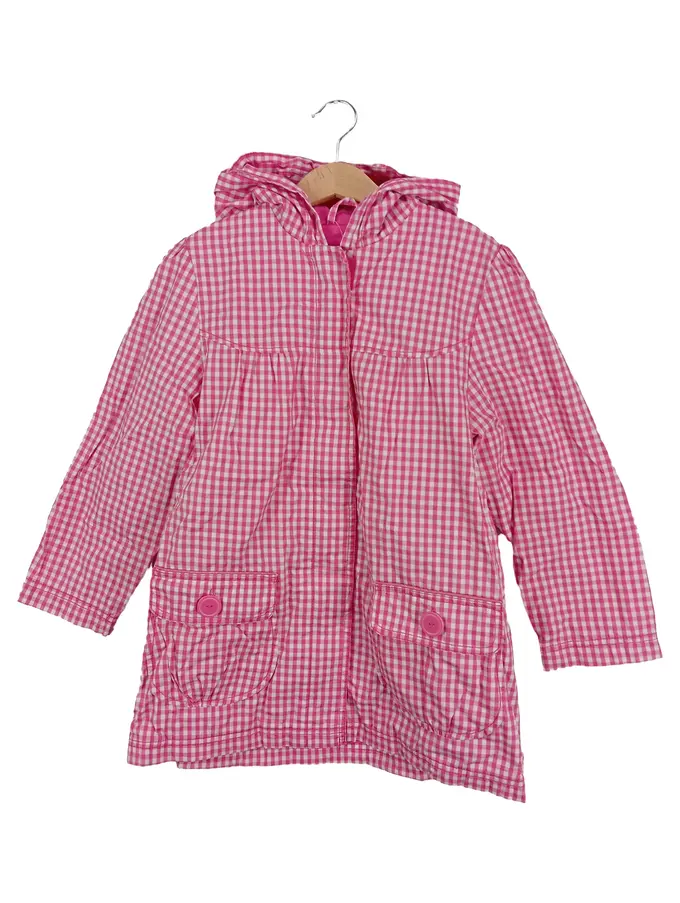 Mädchen Regenjacke Gr. 128/134 Pink Weiß Kariert Kapuze