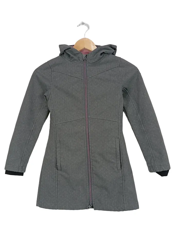 Mädchen Softshelljacke Gr. 134 Grau Kapuze Fleece gefüttert