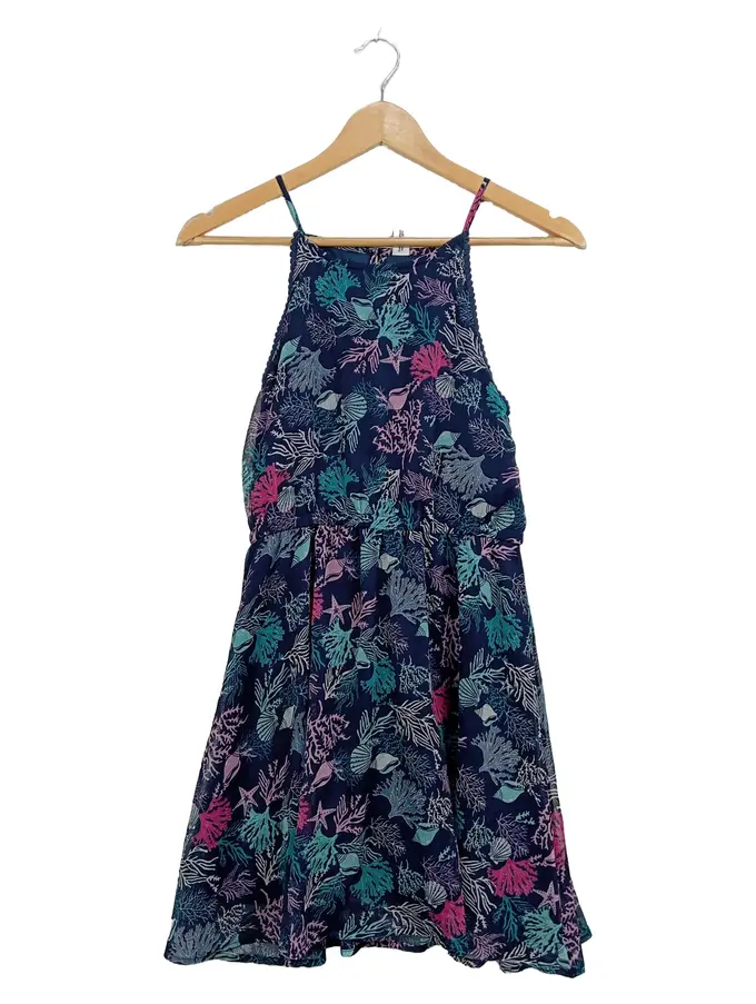 Mädchen Sommerkleid Korallen Muster Blau Gr. 146/152