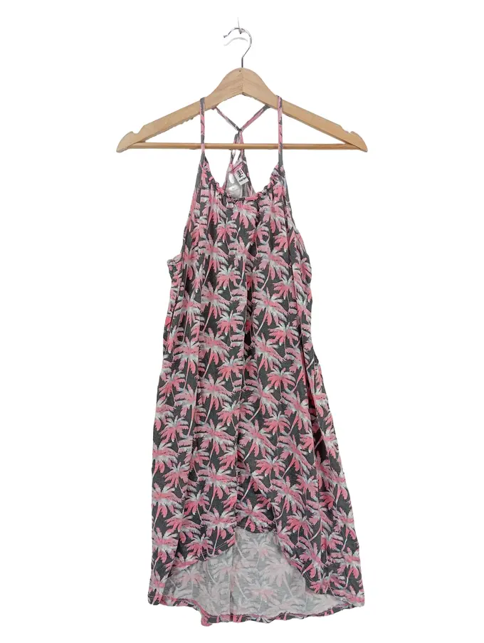 Mädchen Sommerkleid Palmenmuster Gr. 158/164 Grau Rosa Sommer