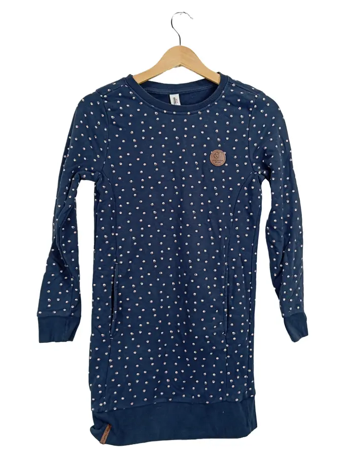Mädchen Sweatkleid Gr. 146/152 Blau Punkte Langarm
