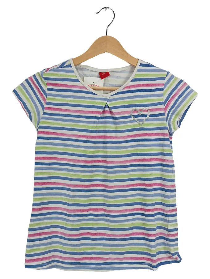 Mädchen T-Shirt Gr. 140 gestreift Herz Strass Baumwolle