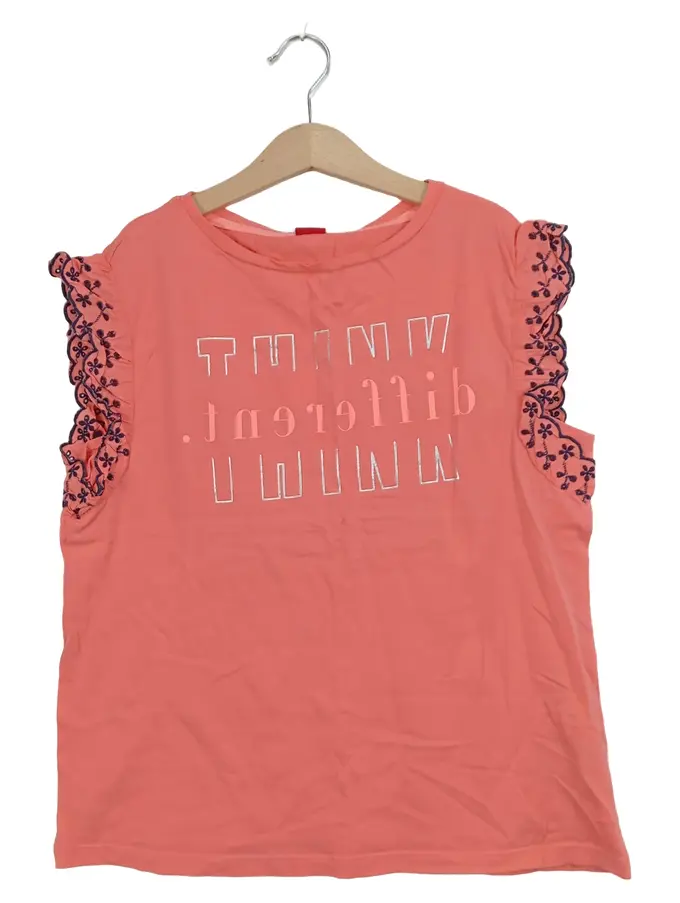 Mädchen T-Shirt Gr. 152 Rosa Rüschen Stickerei Baumwolle