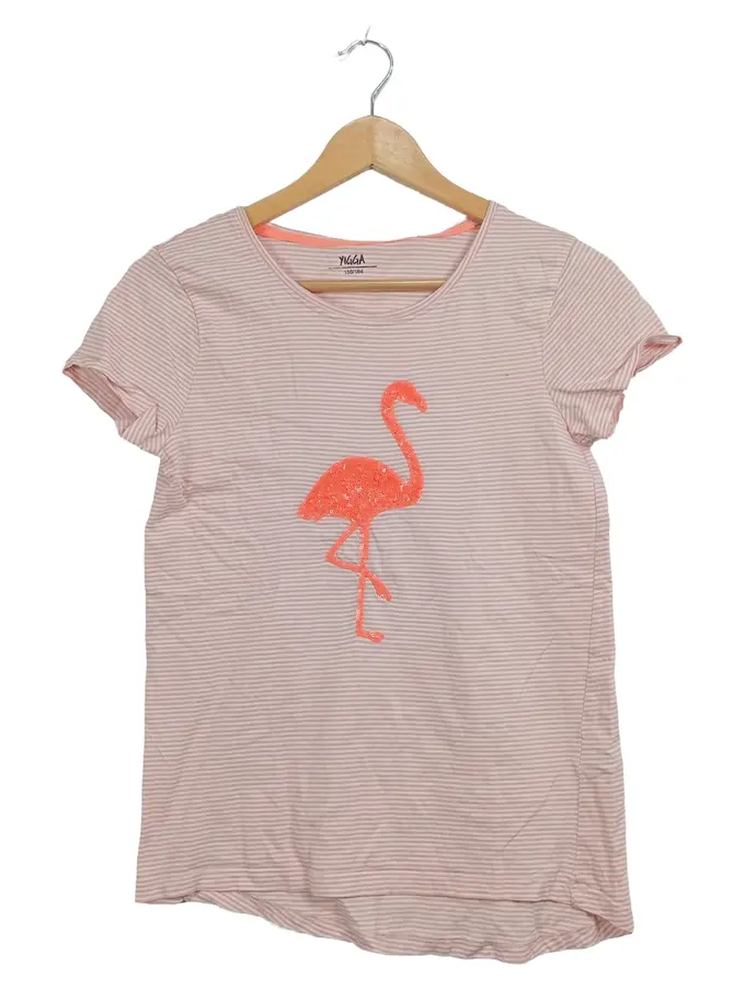 Mädchen T-Shirt Gr. 158/164 Rosa Gestreift Flamingo Pailletten