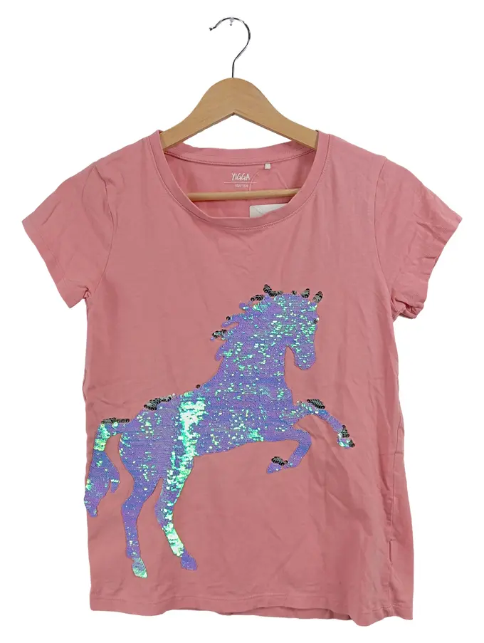 Mädchen T-Shirt Rosa Gr. 158, 164 Pferde-Pailletten Casual