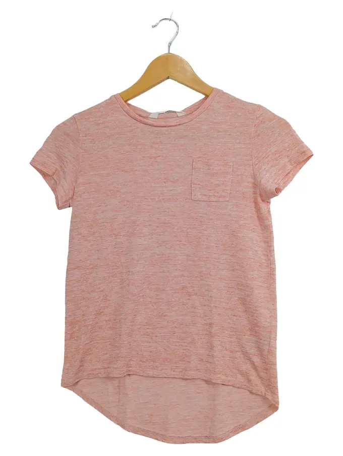 Mädchen T-Shirt Rosa Meliert Gr. 146/152 Brusttasche Casual