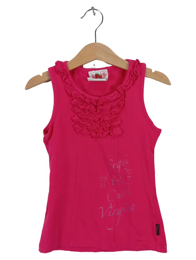 Mädchen Top Shirt Ärmellos Pink Rüschen Gr. 116 Feminin