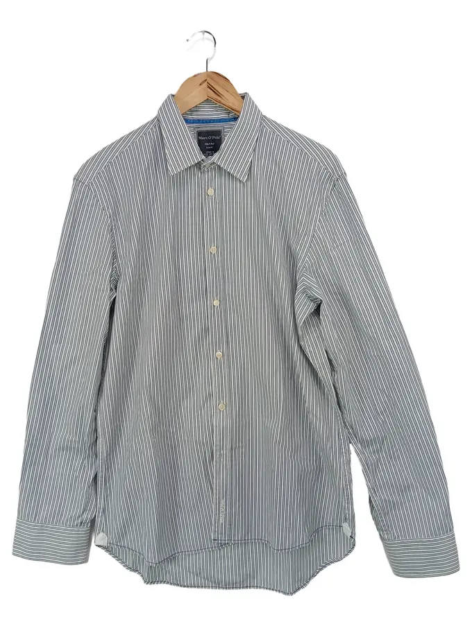 MARC O POLO Herren Freizeithemd Gr. 50/L Blau Gestreift Casual Langarm