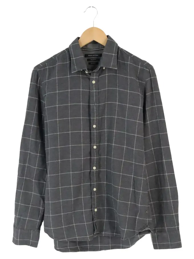 MARC O POLO Herren Freizeithemd M Grau Kariert Langarm Baumwolle