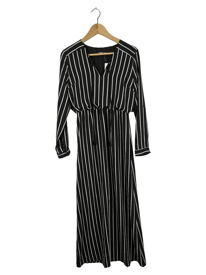Maxikleid gestreift Damen Gr. 38/M Schwarz Langarm Festlich Modern