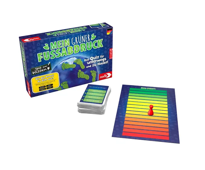 Das Quizspiel 'Mein grüner Fußabdruck' von Noris vermittelt Kindern ab 8 Jahren spielerisch Wissen über ökologische Themen. Mit 110 Quizkarten werden Fragen zur Umwelt und zum Klimawandel gestellt, die das Lernen und Erklären von Begriffen erleichtern. Das Spiel kann mit bis zu 6 Spielern gespielt werden und ist ideal für Familien oder unterwegs.
