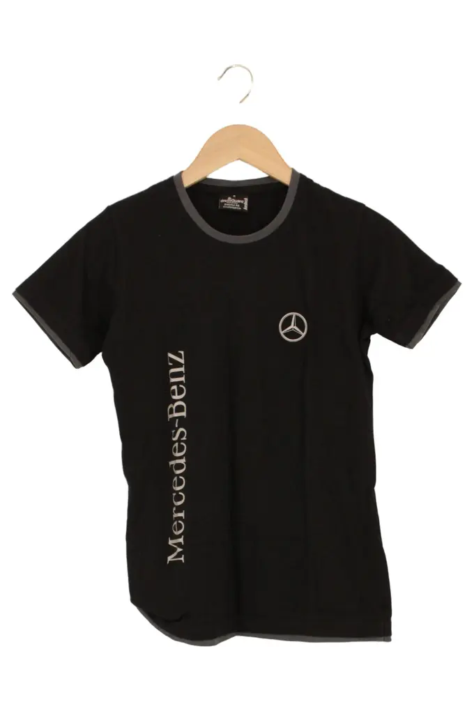 MERCEDES BENZ T-Shirt Damen 36/S Schwarz Logo-Print Klassisch Streetwear