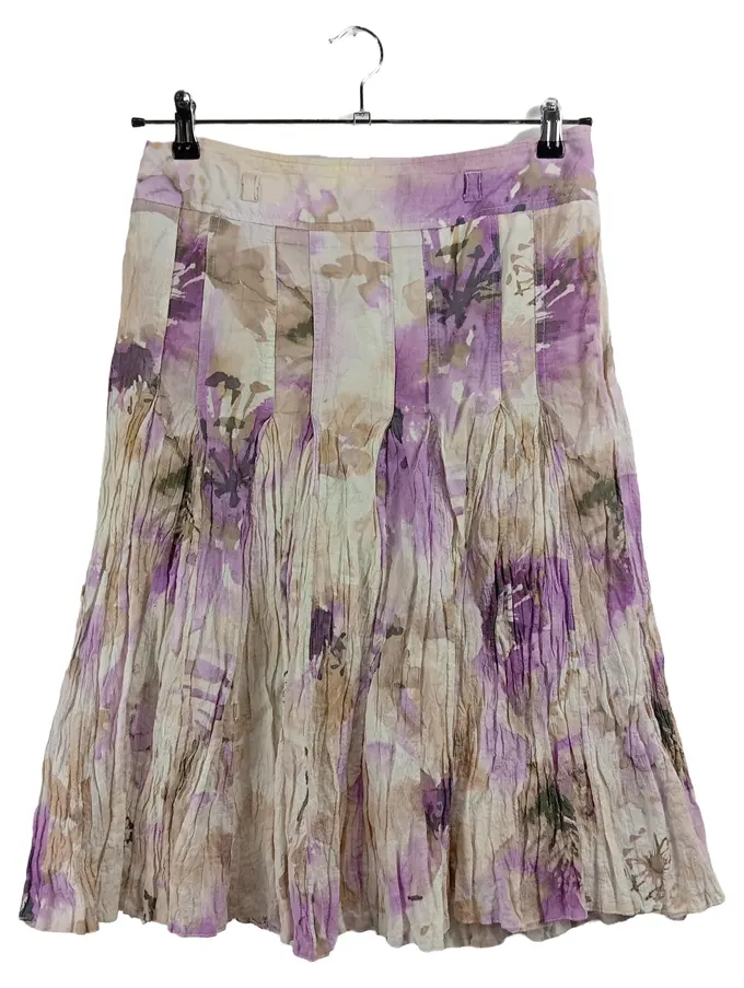Midirock Faltenrock Damen Blumenmuster Baumwolle Lila Gr. 36 S