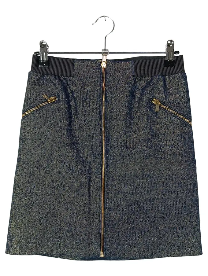 Minirock Damen 38/M Blau Elegant Luxuriös Reißverschluss Metallic