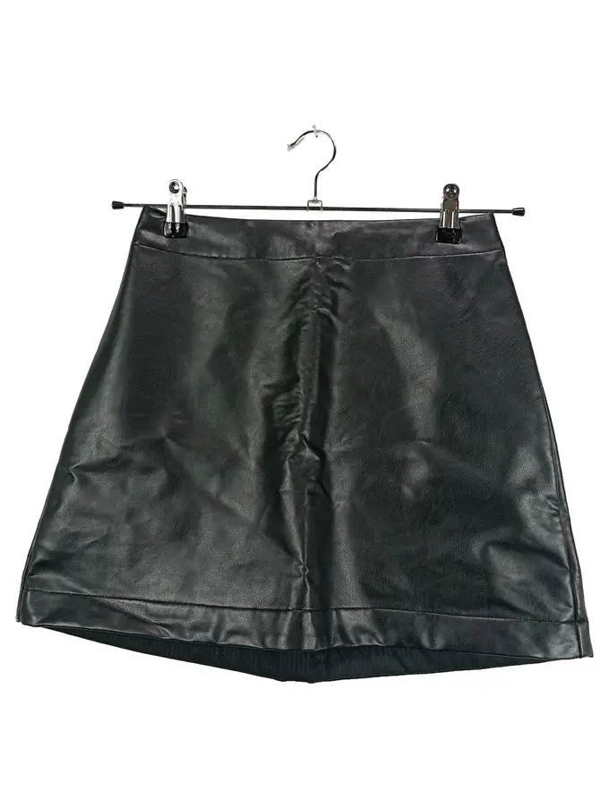 Minirock Kunstleder Damen Gr. 34/XS Schwarz A-Linie Rock