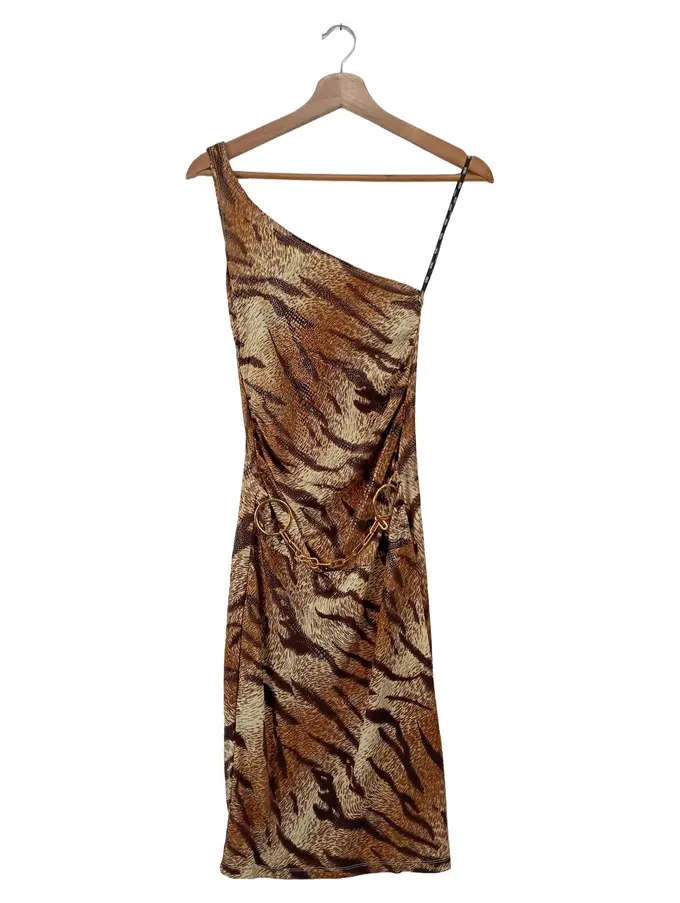 MNG Cocktailkleid Damen Tiger Muster Gr. 34/XS