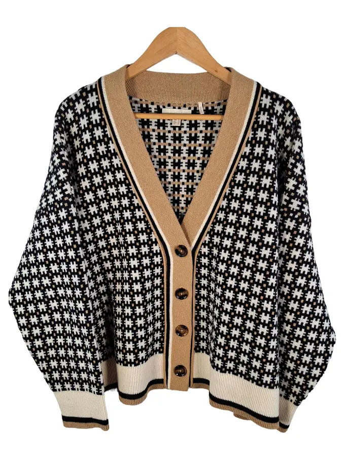 Modern Heritage Francesca Strickjacke Damen Gr. 42 Beige Schwarz Wolle