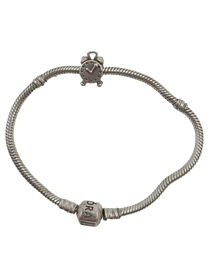 Moments Schlangenkette Armband mit Wecker Charm Silber 17 cm Damen