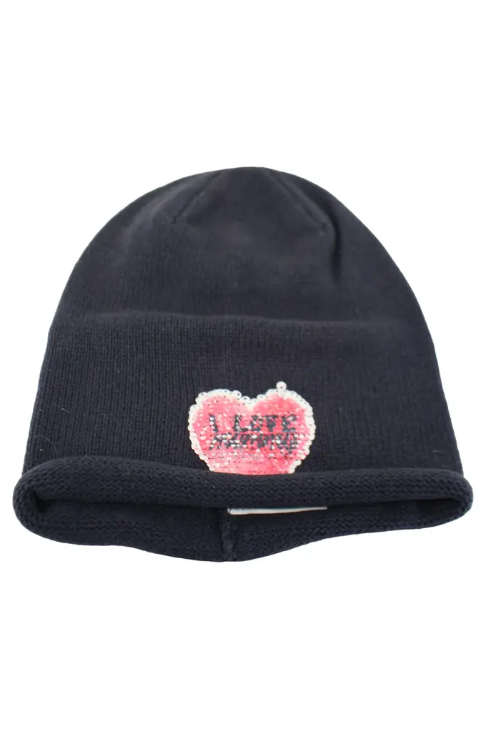 Mütze Damen Schwarz Pailletten Herz Casual Einheitsgröße Beanie