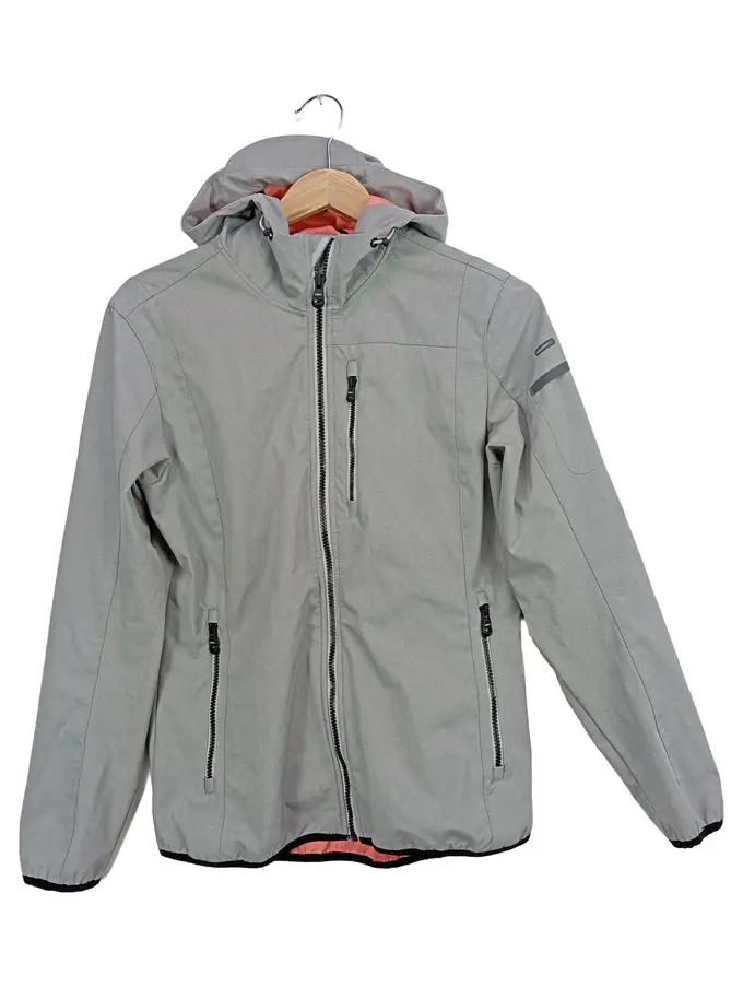 Outdoorjacke Damen Gr. 38/S Grau Sportlich mit Kapuze