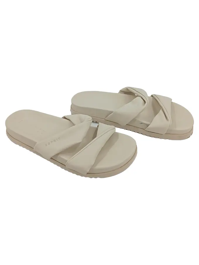 Pantoletten Damen Gr. 41 Beige Kunstleder Sommer Casual Sandalen