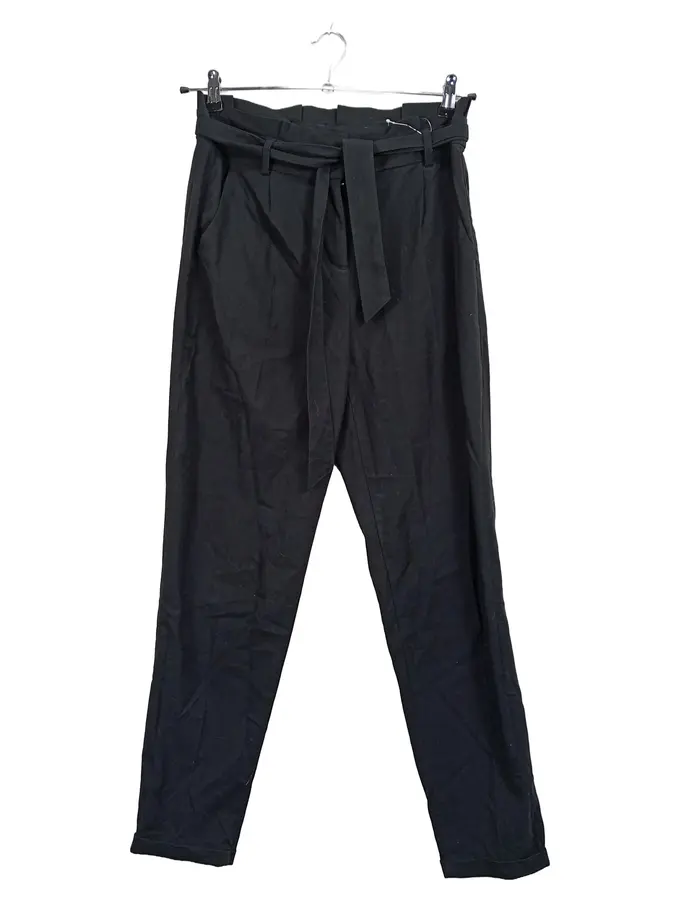 Paperbag Stoffhose Damen Gr. 36 Schwarz Elegant Bindegürtel