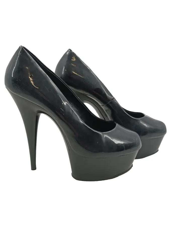 Plateau Pumps Damen Gr. 40 Schwarz Lack High Heels 16cm