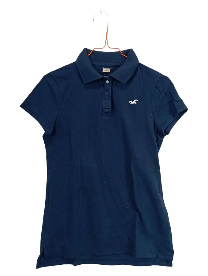 Poloshirt Damen Gr. 38 M Blau Stretch Baumwolle Logo Casual Basic