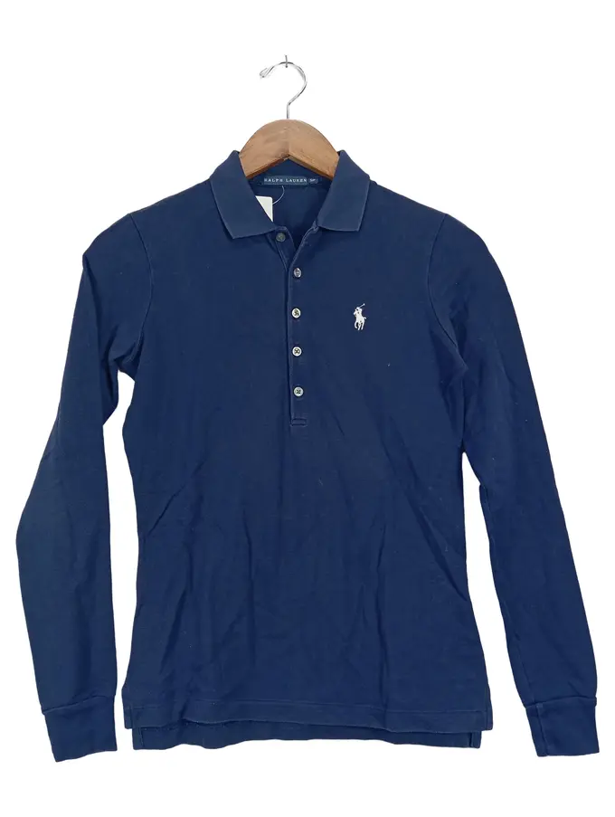 Poloshirt Damen Langarm Gr. 36/S Blau Klassisch