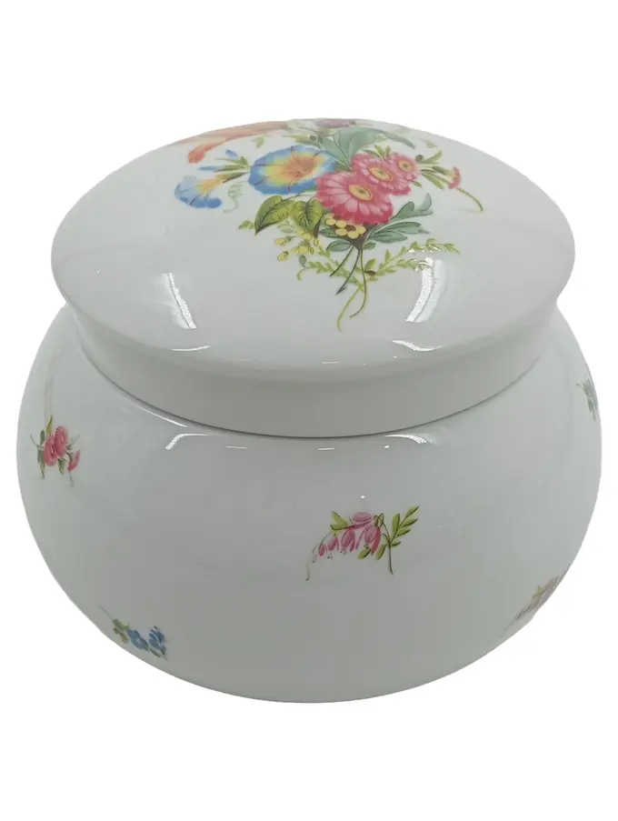 Porzellan Dekodose Blumenmotiv Weiß mit Deckel 11cm