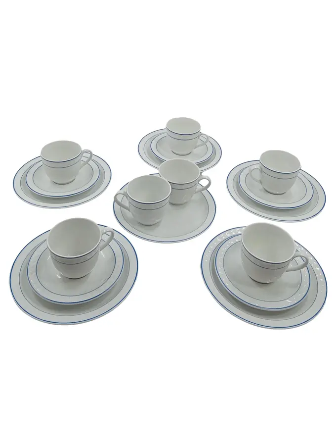 Porzellan Kaffeeservice 6 Personen Weiß Blau 18-teilig