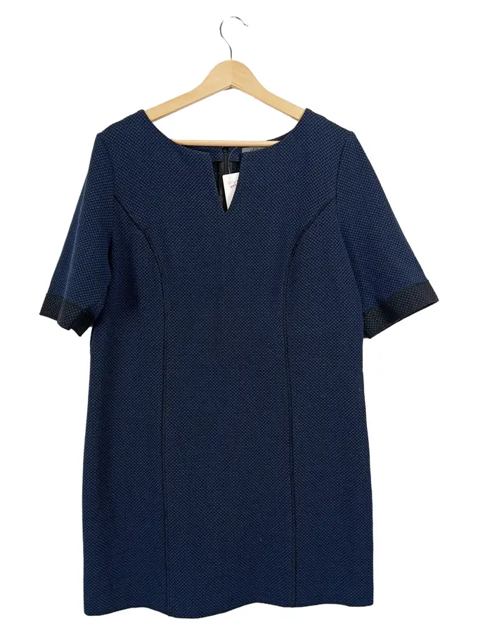 Premium Damen Businesskleid Gr. 44 Blau Strukturmuster Kurzarm
